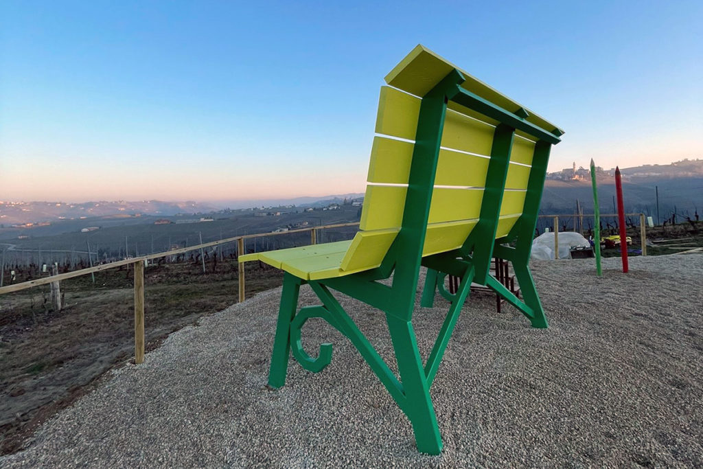 Our Association has finally installed Big Bench no. 191: the Moscato bench! It is part of the Big Bench Community Project circuit and is located toward the top of Via Manzotti, one of the highest hills in the village of Castiglione Tinella. We strongly wanted this bench in order to leave the people of Castiglion, the activities and the territory with something they could feel as “theirs,” thus dedicating it to Moscato, which is the main product of our land